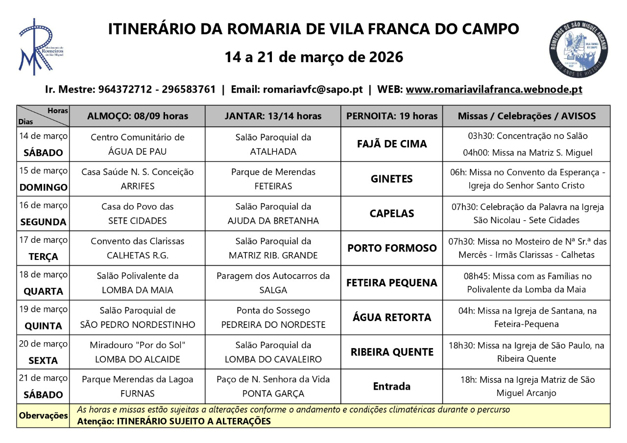 Telemóvel: 964 372 712 Telefone: 296 582 569 Telefone: 296 583 761 Facebook: https://www.facebook.com/Romeiros-de-Vila-Franca-do-Campo-107627324410664